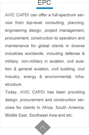 AVIC CAPDI provides engineering, architectural, construction, environmental and consulting services to a broad range of clients across a multitude of industries. We pride ourselves on finding unique, innovative and cost effective solutions to our clients’ requirements every day. From civil aviation & general aviation, defense & military bases to energy & environmental facilities, to civil buildings, to industrial facilities, pharmaceutical buildings, AVIC CAPDI delivers planning, design and construction expertise that consistently surpasses our clients’ expectations.